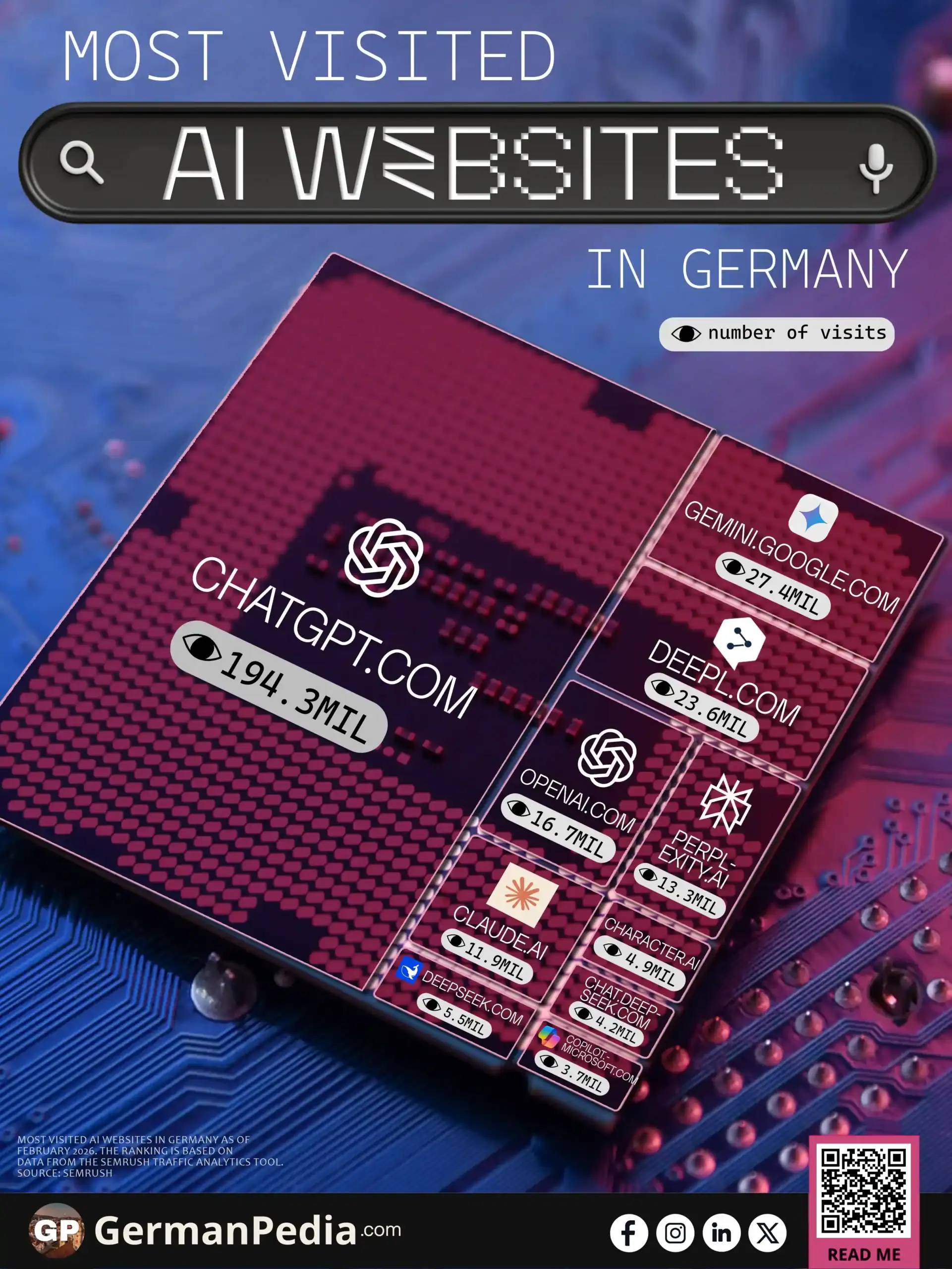 Germans clearly favor ChatGPT over any other AI. The sad part is that Mistral AI (an EU company) couldn't make the top 10 list. Read more ->