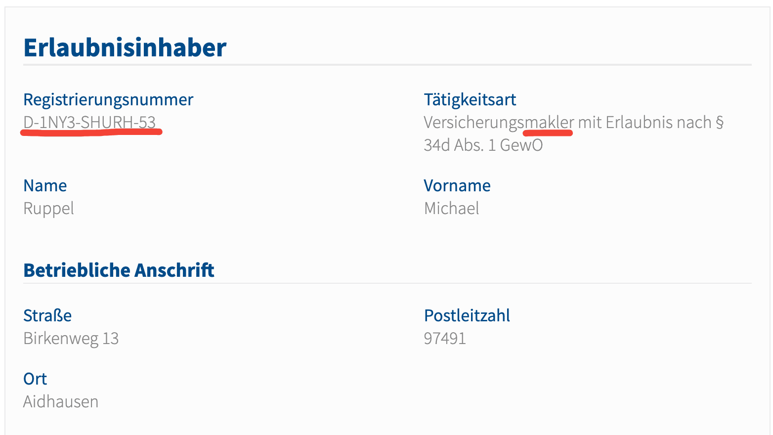You can do so by checking the registration number of the individual or company on VermittlerRegister. Every broker and agent must display their registration number on their website's "Impressum".